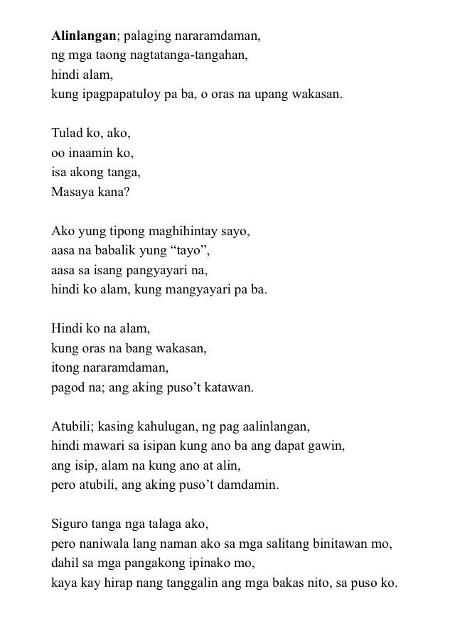 Juan dela Cruz sila ba ay ating iiwanan o ipagkakanulo. Kapag ang pag-ibig na pinanghahawakan mo ay bigla kang binitawan unti-unti kang nasisira. Upang ang pusot isip ay di na muling malito.