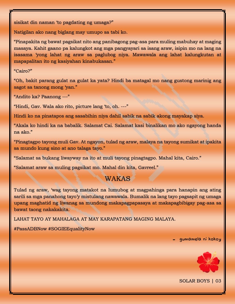 Nanghihina at di makakilos umaasa na babalik ka muli upang akoy mabuo kahit man lang sa kaunting. Kapag babalik ako ng ospital doon lang siya magiging masigla. At upang hindi na muling masaktan ang masyado nang nadurog na puso.